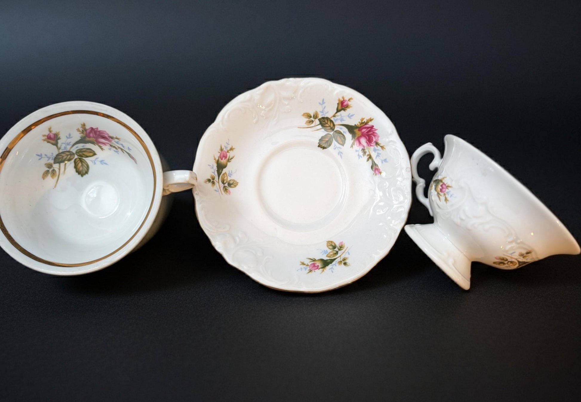 Pour a warm cup of European elegance and tradition with this exquisite 15-Piece Wawel China Tea Set, a true embodiment of the "Nonna Holiday" aesthetic and timeless entertaining. Crafted in Poland between 1954 and 1999, this vintage porcelain is richly detailed with the charming Moss Rose pattern—delicate clusters of pink roses and foliage—against a backdrop of elegant, Rococo-style scrolling and embossing. Each piece is elegantly trimmed with genuine gold, making it an heirloom that tells a beautiful, story-rich history. This collection is perfectly suited as elevated entertaining essentials for a stylish Supper Club gathering or as a personal, sentimental gift to honor family tradition.